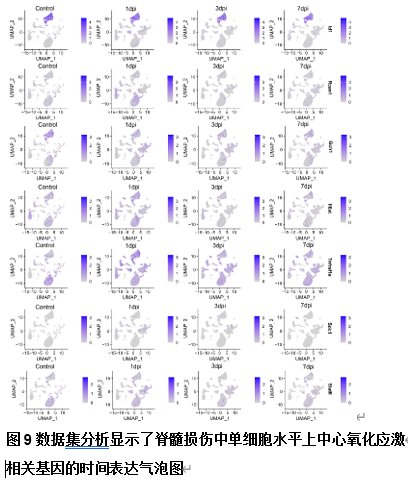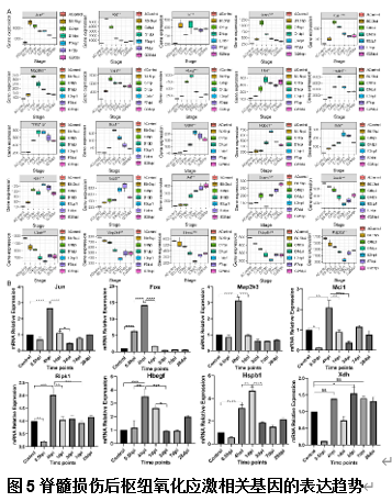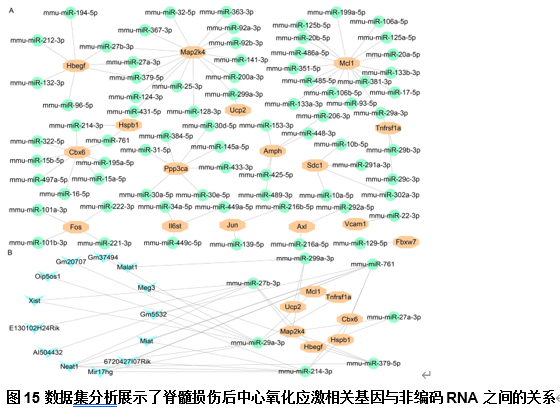 氧化应激对继发性脊髓损伤有显著影响。尽管氧化应激很重要,但有关脊髓损伤中氧化应激的研究仍不完整。研究氧化应激相关基因的表达和调控可提升脊髓损伤的诊断和治疗水平。为此,此次实验分析了来自GEO数据库的脊髓损伤人类血液和脊髓损伤小鼠组织的测序数据,以确定与脊髓损伤严重程度相关的诊断生物标志物,还探索了氧化应激相关基因的表达模式、潜在的调控机制和潜在的治疗药物,并通过在损伤脊髓组织中以免疫荧光和定量PCR验证基因表达结果。实验结果揭示了不同脊髓损伤严重程度患者中与氧化应激和免疫反应相关的生物标志物。还鉴定了小鼠损伤脊髓组织中差异表达的氧化应激相关基因和关键中枢基因,并揭示了这些基因在组织和单细胞水平上的时间表达模式。研究阐明了与氧化应激有关的信号通路,并鉴定了不同细胞类型和损伤后时间点的配体-受体对。此外实验还发现了调节这些中枢基因的微小RNA、长链非编码RNA和转录因子,突出了它们在脊髓损伤后不同阶段调节基因表达的作用。靶向这些中枢基因的药物也被鉴定出来,这建立治疗药物、中枢基因和先天免疫细胞之间的联系。因此,此次研究不仅确定了反映脊髓损伤严重程度的诊断生物标志物,还描述了氧化应激相关基因的表达动态,并确定了潜在的调控机制和靶向脊髓损伤治疗的药物。这一研究对推进脊髓损伤的诊断和量身定制的治疗至关重要。