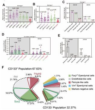 Abstract: The presence or absence of adult neural stem cells in the mammalian forebrain ependyma has been debated for two decades. In this study, we performed single-cell RNA sequencing to investigate the cellular composition of the ependymal surface of the adult mouse forebrain using whole mounts of lateral walls of lateral ventricles. We identified 12 different cell subtypes in the ependymal surface. Immunocytochemical analyses revealed that CD133+ multi-ciliated cells comprised 67.6% of ependymal cells, while the remaining 32.4% were CD133– . CD133+ ependymal cells can be further classified into FOXJ1+ /SOX2+ /ACTA2+ cells, FLT1+ /CD31+ /CLDN5+ endothelial-like cells, and PDGFRB+ /VTN+ /NG2+ pericyte-like cells, as well as endothelial–pericyte-like cells and Foxj1+ endotheliallike cells. CD133– ependymal cells can be further divided into endothelial-like cells, Foxj1+ ependymal cells, Foxj1+ endothelial-like cells, pericyte-like cells, endothelial-pericyte-like cells, VIM+ cells, and cells negative for all of these markers. This comprehensive profiling confirms the heterogeneity of the ependymal surface in the adult mouse forebrain. Debate regarding whether adult ependymal cells contain neural stem cells has arisen because different researchers have examined different populations of ependymal cells. Our study provides a new perspective for investigation of clinical endogenous neural stem cells, ultimately paving the way for stem cell therapies in neurological diseases.