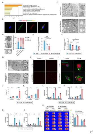 图3小胶质细胞CARD19敲减加重了卒中后线粒体超微结构损伤和功能障碍