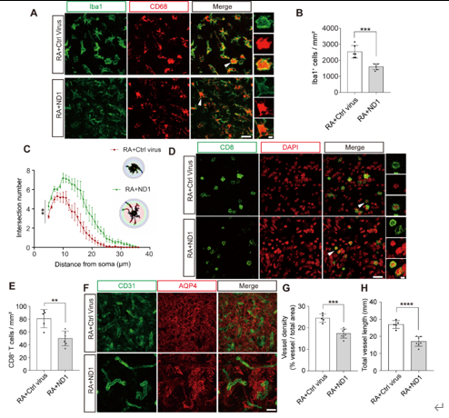 图2 ND1过表达改善损伤灶周围微环境