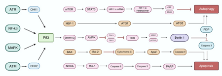 自噬和凋亡是调节细胞命运的两个基本机制,它们之间有着复杂的联系。它们的调节由许多共同的信号因子控制,例如p53蛋白、丝氨酸/苏氨酸激酶、BH3仅蛋白和原癌基因,这些因子影响着自噬和凋亡。在脊髓损伤的背景下,这些过程之间的相互作用对于决定神经元的生存或死亡至关重要。凋亡通过线粒体功能障碍和死亡受体激活途径,导致神经元损伤,自噬的调节能缓解或加剧这种损伤。自噬通过PINK1与Beclin-1合作,发挥神经保护作用,但自噬失调则加剧凋亡(图5)。铁死亡则是由铁引发的活性氧积累与脂质过氧化作用所致,其在脊髓损伤中的发生与铁超载密切相关。自噬通过铁蛋白降解(NCOA4介导的铁死亡)与脂质自噬(RAB7A介导的自噬)在脊髓损伤中调节铁死亡过程。自噬与铁死亡之间的相互作用通过Beclin-1、HMGB1等分子实现,二者共同促进了细胞的氧化损伤和神经元死亡。调节自噬的活性,特别是与铁死亡相互作用的路径,可能成为脊髓损伤治疗的新策略,以减轻继发性损伤、促进神经保护和功能恢复。