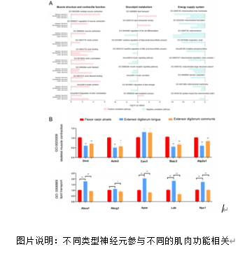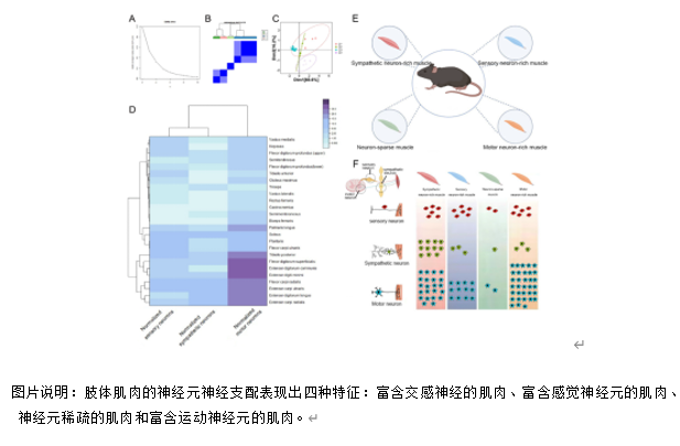 既往研究仅知道骨骼肌是由神经整体控制和协调的,在体内执行各种功能。然而,关于不同肌肉的神经控制特性是否不同,以及它们背后的意义,研究很少。此研究利用3DISCO兼容的多示踪剂技术来描绘支配肢体肌肉的感觉和交感神经元的空间分布模式。将小鼠肢体肌肉的转录组测序数据集整合到公共数据库中,并与神经元空间分布数据进行相关性分析,以揭示不同类型神经元对肌肉功能通路的独特影响。结果发现:(1)空间分布模式:与感觉和运动神经元相比,交感神经元的分布更集中。(2)肢体肌肉的神经元神经支配表现出四个特征:富含交感神经的肌肉、富含感觉神经元的肌肉、神经元稀疏的肌肉和富含运动神经元的肌肉。(3)感觉神经元密度主要与肌肉收缩结构和细胞pH值有关。交感神经元密度主要和蛋白激酶活性、肌肉脉管系统、肌肉钙依赖性蛋白激酶活性,脂质转运和囊泡释放有关。运动神经元密度主要与蛋白激酶活性、细胞粘附、氧化还原酶活性和胞吐有关。(4)与富含神经元神经支配的肌肉共定位的穴位也表现出相关的神经调节功能。这项研究有助于更深入地了解神经合作赋予肌肉不同的生理功能,为治疗各种神经肌肉疾病提供新的见解和实验证据。