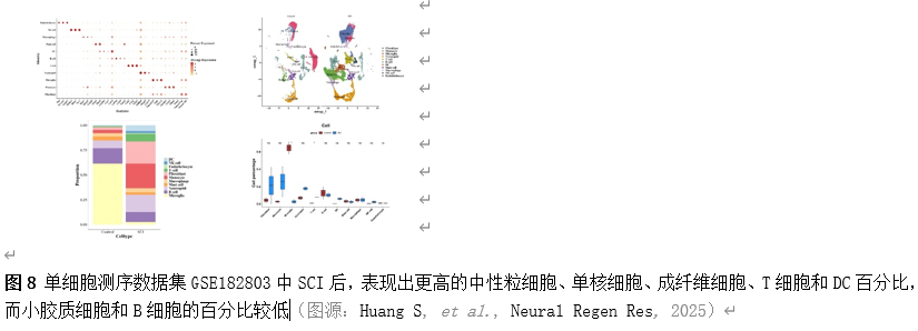 总之,该研究使用生物信息学分析鉴定了与SCI相关的RNA修饰相关的生物标志物(Elovl6、Idi1、Sqle和Stbd1)。此外,该研究确定了脊髓损伤中的两个关键细胞,T细胞和小胶质细胞,并分析了这些生物标志物在免疫浸润肥大细胞、T细胞和小胶质细胞中的表达模式。功能富集分析揭示了与Elovl6、Idi1、Sqle和Stbd1相关的通路,强调了它们在脊髓损伤病理生理中的潜在作用。这些发现表明,这些生物标志物有望在脊髓损伤的治疗应用中发挥作用。然而,目前的研究还存在一些局限性。首先,在研究中使用异氟醚麻醉可能会对细胞转录组产生干扰。未来的研究可以通过比较不同的麻醉方法,建立麻醉对照组,或采用生物信息学方法来纠正数据,从而排除麻醉效果的影响。此外,该研究还缺乏对人体样本的验证。未来的工作应该纳入人类SCI数据集(如来自GEO或TCGA的数据)和临床样本(如血液或脑脊液),以验证Elovl6、Idi1、Sqle和Stbd1等生物标志物的诊断和治疗潜力。最后,该研究没有在蛋白水平上验证关键分子靶点的表达和功能。未来的研究应采用功能实验,如免疫荧光染色、基因敲除或过表达研究,进一步阐明这些分子在脊髓损伤中的具体机制。这些改进将提高研究结论的普遍性和临床转化价值。