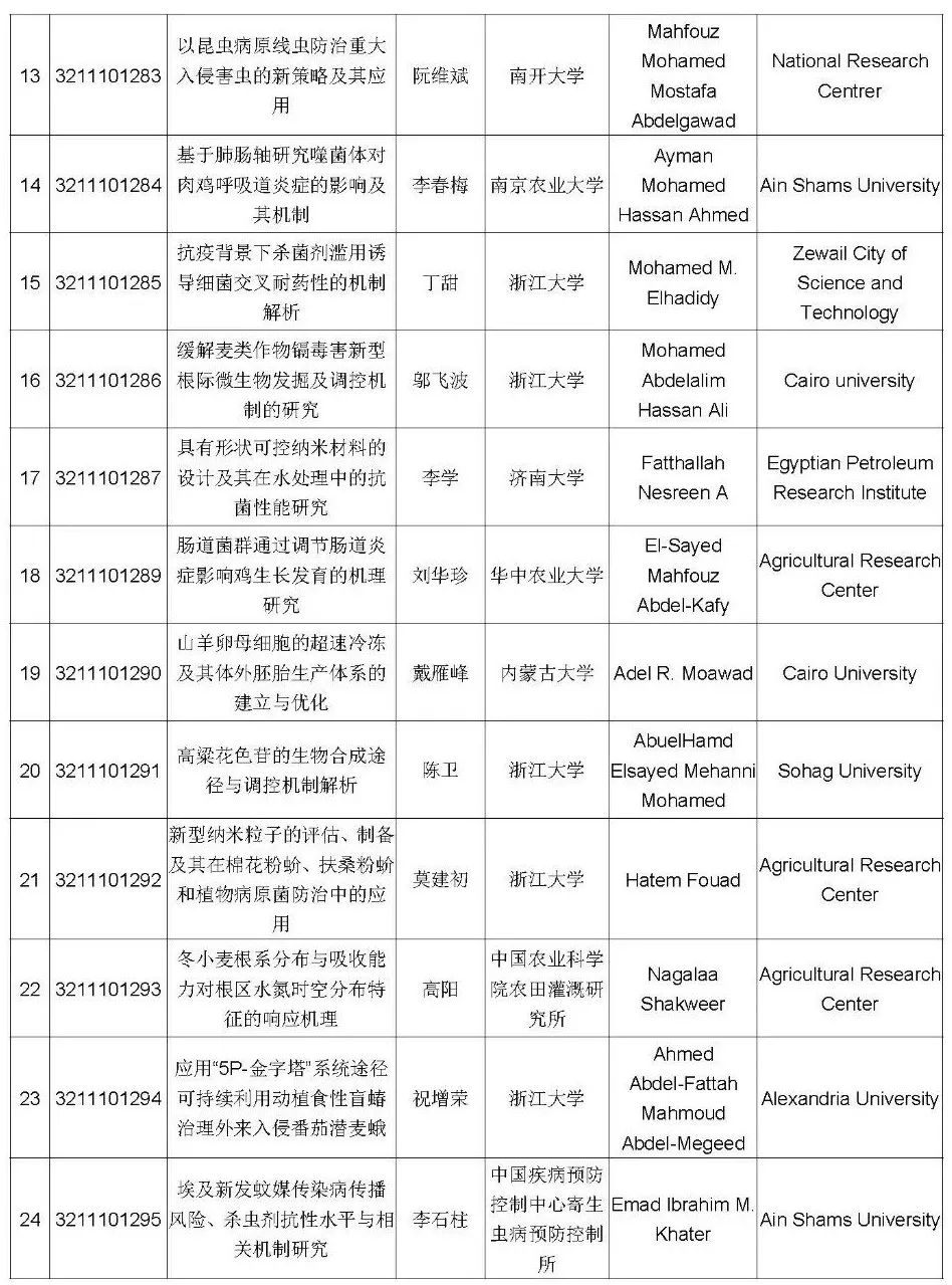 2021年度国家自然科学基金委员会与埃及科学研究技术院合作研究项目初审结果通知