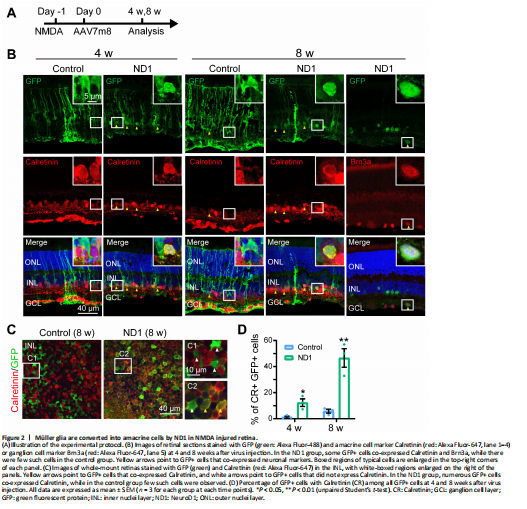 Figure 2|Müller glia are converted into amacrine cells by ND1 in NMDA injured retina.