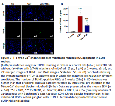 Figure 9|T-type Ca2+ channel blocker mibefradil reduces RGC apoptosis in COH retinas.