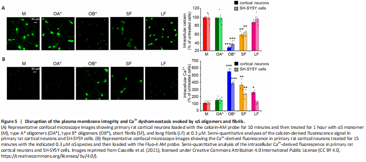 Figure 5|Disruption of the plasma membrane integrity and Ca2+ dyshomeostasis evoked by αS oligomers and fibrils.