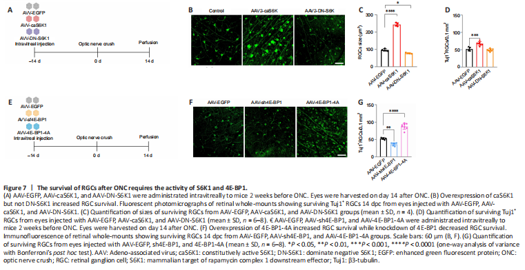 Figure 7|The survival of RGCs after ONC requires the activity of S6K1 and 4E-BP1.
