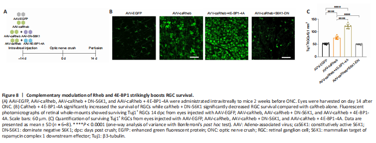 Figure 8|Complementary modulation of Rheb and 4E-BP1 strikingly boosts RGC survival.