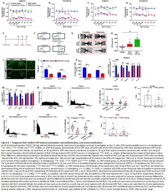 Figure 8|Exogenous RvE1 inhibits CPIP-induced nociception, neuroinflammation, and central sensitization.