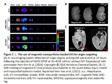 Figure 2|The use of magnetic nanoparticles-loaded EVs for organ targeting.