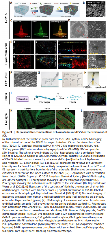 Figure 3|Representative combinations of biomaterials and EVs for the treatment of SCI.
