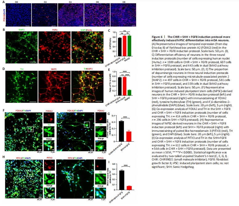Figure 6| The CHIR + SHH + FGF8 induction protocol more effectively induced hiPSC differentiation into mDA neurons.
