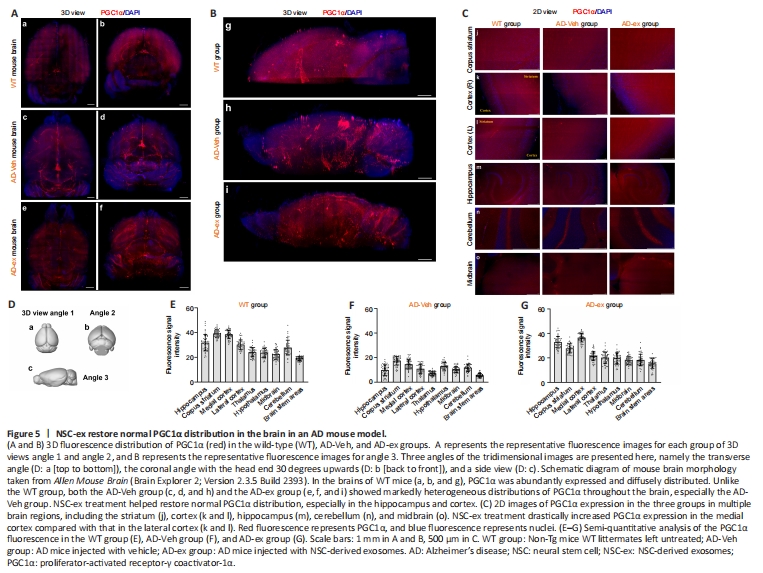 Figure 5| NSC-ex restore normal PGC1α distribution in the brain in an AD mouse model.
