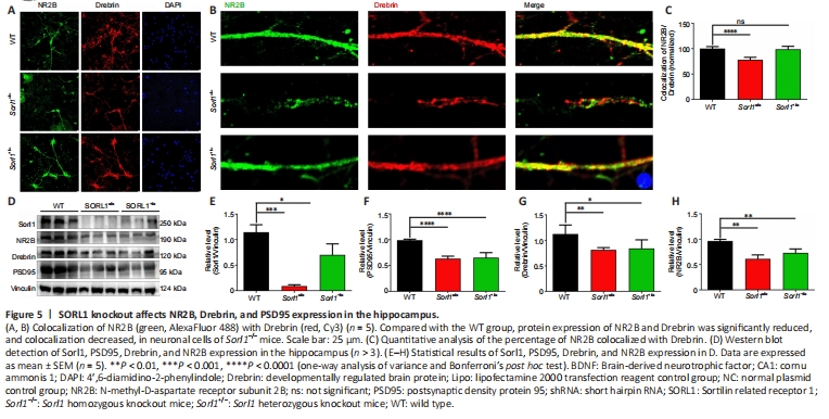 Figure 5|SORL1 knockout affects NR2B, Drebrin, and PSD95 expression in the hippocampus.