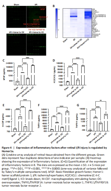 Figure 4|Expression of inflammatory factors after retinal I/R injury is regulated by Homer1a.