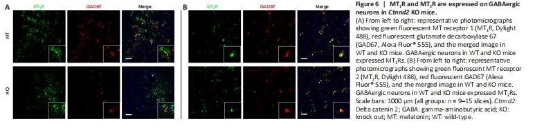 Figure 6|MT1R and MT2R are expressed on GABAergic neurons in Ctnnd2 KO mice.