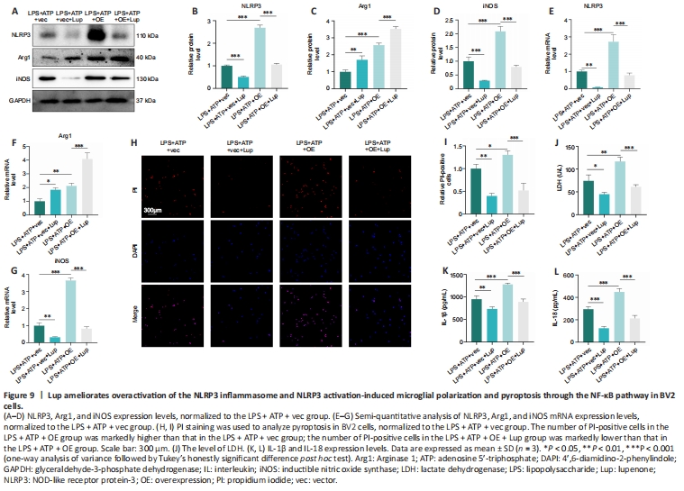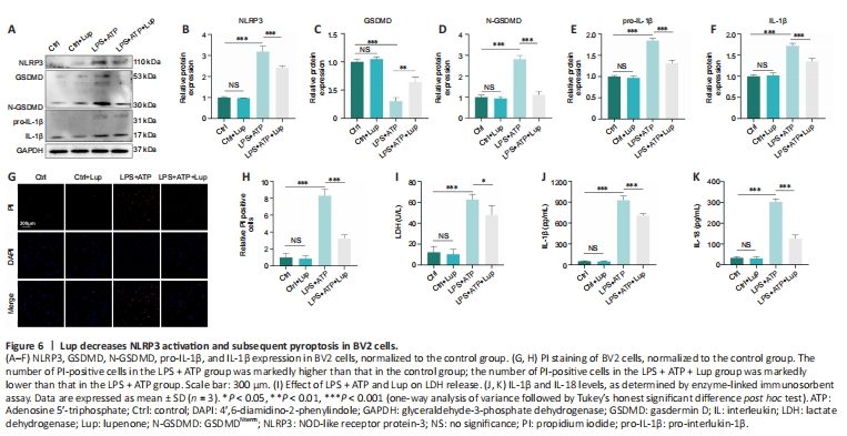 Figure 9|Lup ameliorates overactivation of the NLRP3 inflammasome and NLRP3 activation-induced microglial polarization and pyroptosis through the NF-κB pathway in BV2 cells.