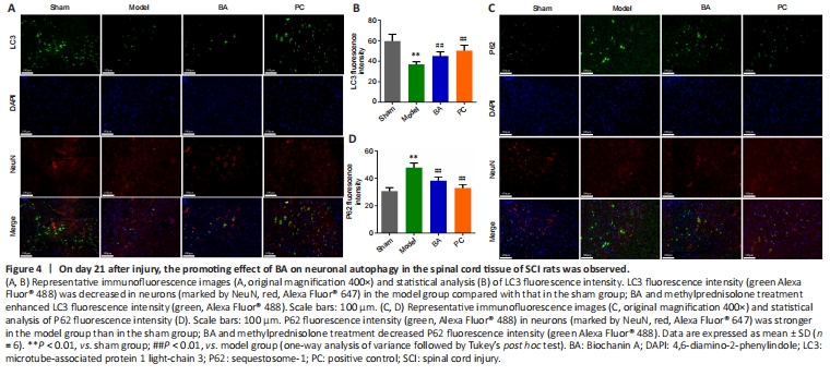 Figure 4|On day 21 after injury, the promoting effect of BA on neuronal autophagy in the spinal cord tissue of SCI rats was observed.