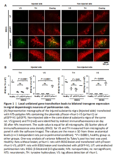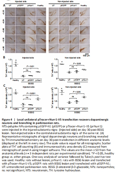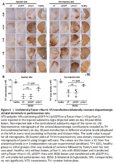 Figure 4|Local unilateral pTracer-rNurr1-V5 transfection recovers dopaminergic neurons and branching in parkinsonian rats.