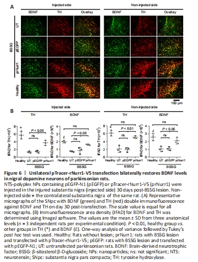 Figure 6|Unilateral pTracer-rNurr1-V5 transfection bilaterally restores BDNF levels in nigral dopamine neurons of parkinsonian rats.