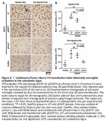 Figure 8| Unilateral pTracer-rNurr1-V5 transfection halts bilaterally microglial activation in the substantia nigra.