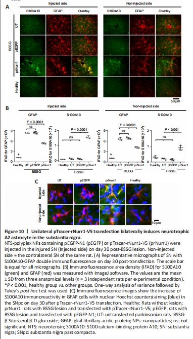 Figure 10|Unilateral pTracer-rNurr1-V5 transfection bilaterally induces neurotrophic A2 astrocyte in the substantia nigra.