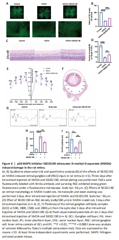 Figure 6| p38 MAPK inhibitor SB202190 attenuates N-methyl-D-aspartate (NMDA)-induced damage in the rat retina.