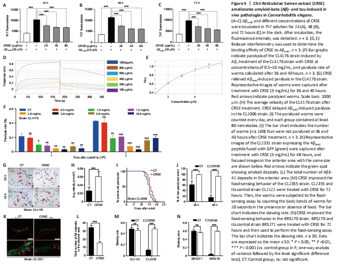 Figure 4|Citri Reticulatae Semen extract (CRSE) ameliorates amyloid-beta (Aβ)- and tau-induced in vivo pathologies in Caenorhabditis elegans.