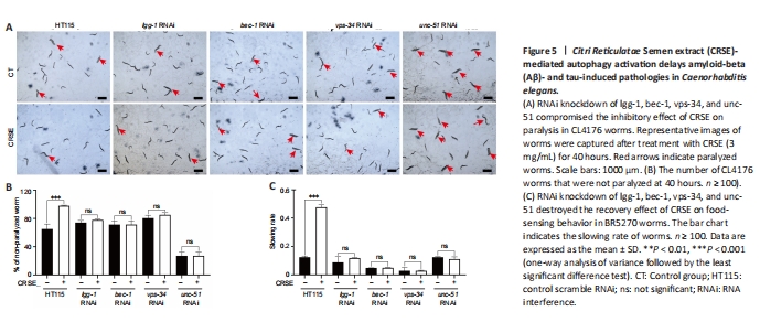 Figure 5|Citri Reticulatae Semen extract (CRSE)-mediated autophagy activation delays amyloid-beta (Aβ)- and tau-induced pathologies in Caenorhabditis elegans.