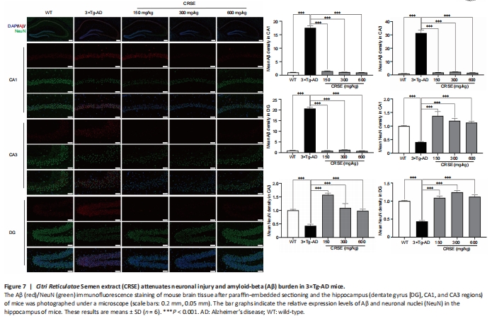 Figure 7|Citri Reticulatae Semen extract (CRSE) attenuates neuronal injury and amyloid-beta (Aβ) burden in 3×Tg-AD mice.