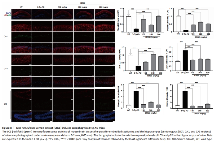 Figure 8|Citri Reticulatae Semen extract (CRSE) induces autophagy in 3×Tg-AD mice.