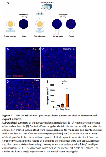 Figure 2|Electric stimulation promotes photoreceptor survival in human retinal explant cultures.