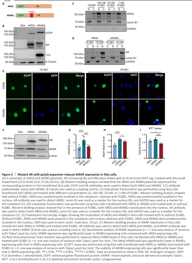 Figure 2 | Mutant AR with polyQ expansion reduces MANF expression in N2a cells.
