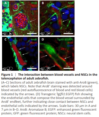 Figure 1 | The interaction between blood vessels and NSCs in the telencephalon of adult zebrafish.