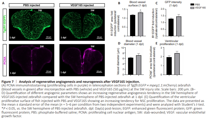 Figure 7 | Analysis of regenerative angiogenesis and neurogenesis after VEGF165 injection.