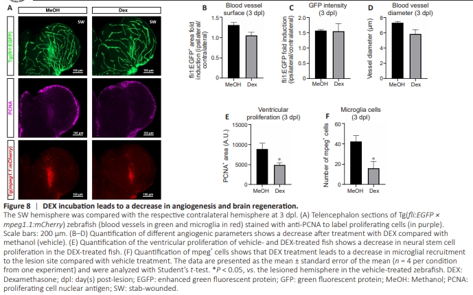 Figure 8 | DEX incubation leads to a decrease in angiogenesis and brain regeneration.