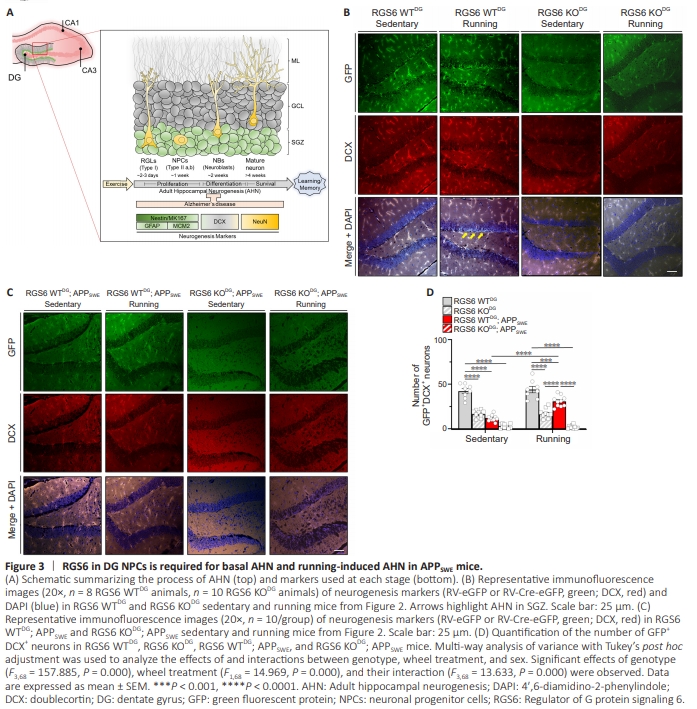 Figure 3 | RGS6 in DG NPCs is required for basal AHN and running-induced AHN in APPSWE mice.