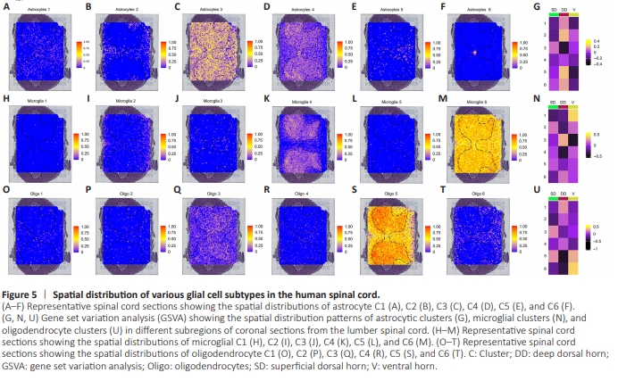Figure 5 | Spatial distribution of various glial cell subtypes in the human spinal cord.