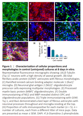 Figure 1 | Characterization of cellular proportions and morphologies in control (uninjured) cultures at 8 days in vitro.