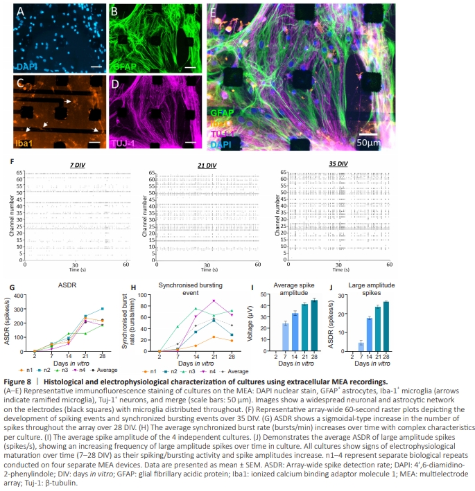 Figure 8 | Histological and electrophysiological characterization of cultures using extracellular MEA recordings.