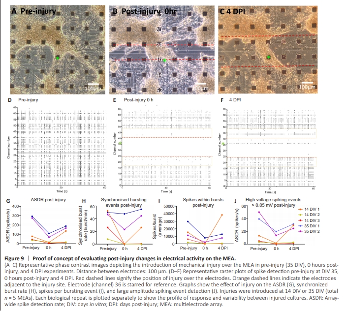 Figure 9 | Proof of concept of evaluating post-injury changes in electrical activity on the MEA.