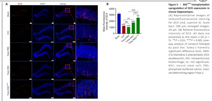 Figure 5 | NSCSox2 transplantation upregulation of DCX expression in mouse hippocampus.