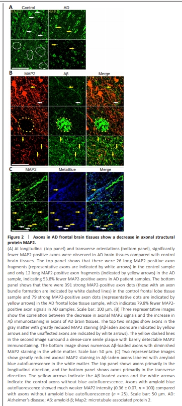 Figure 2 | Axons in AD frontal brain tissues show a decrease in axonal structural protein MAP2.