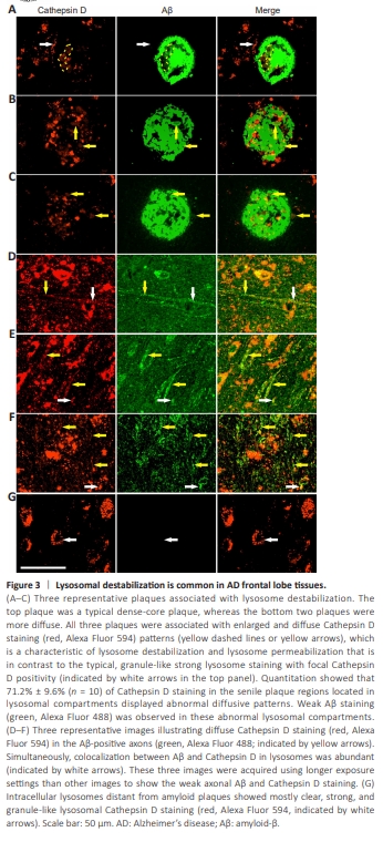 Figure 4 | Lysosomal destabilization is strongly associated with Aβ in the cell bodies of neural cells in AD frontal lobe tissues