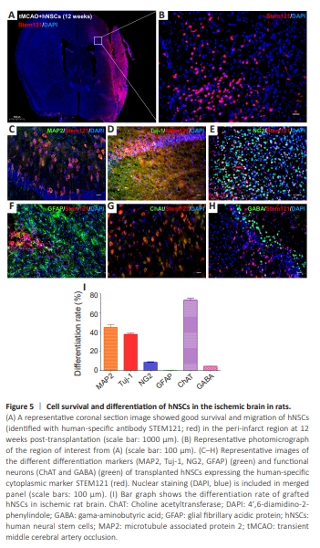 Figure 5 | Cell survival and differentiation of hNSCs in the ischemic brain in rats.