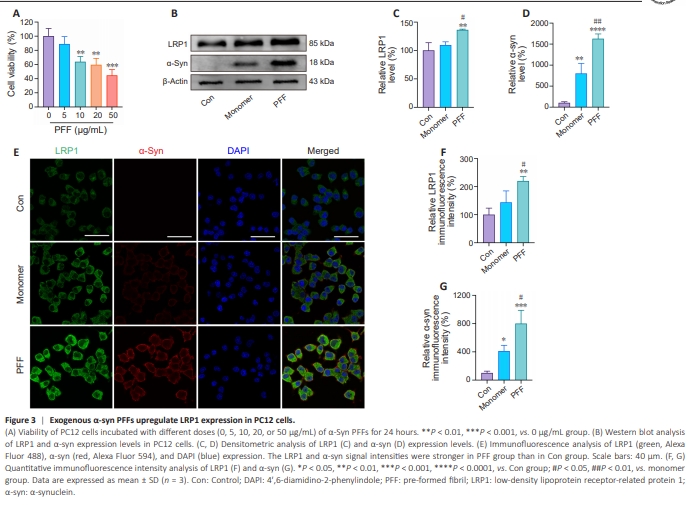 Figure 3 | Exogenous α-syn PFFs upregulate LRP1 expression in PC12 cells.