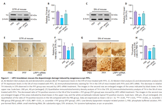 Figure 4 | LRP1 knockdown rescues the dopaminergic damage induced by exogenous α-syn PFFs.