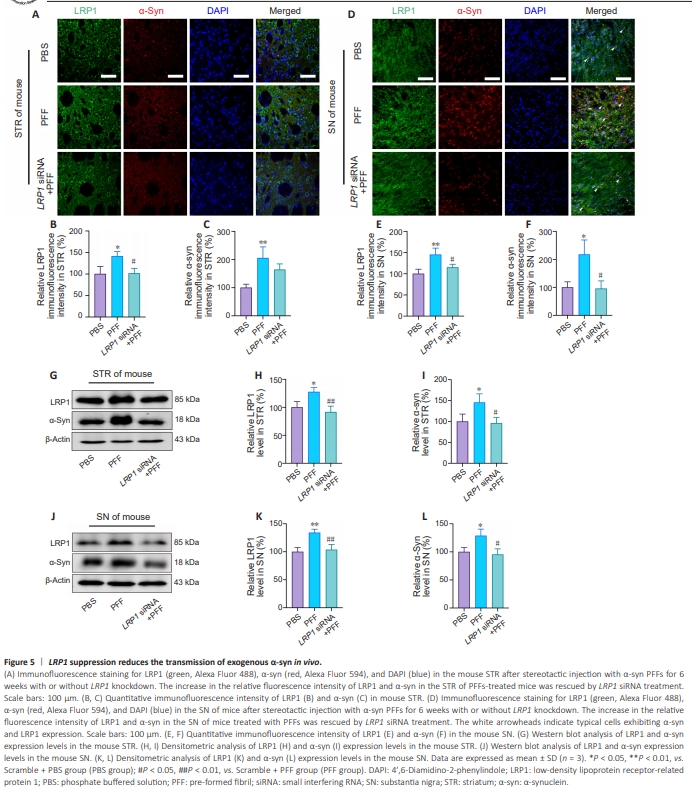 Figure 2 | LRP1 expression is increased in the nigrostriatal system of a mouse model of PD induced by injection with α-Syn PFFs.