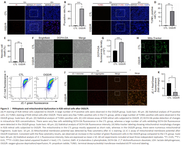 Figure 3 | PANoptosis and mitochondrial dysfunction in R28 retinal cells after OGD/R.